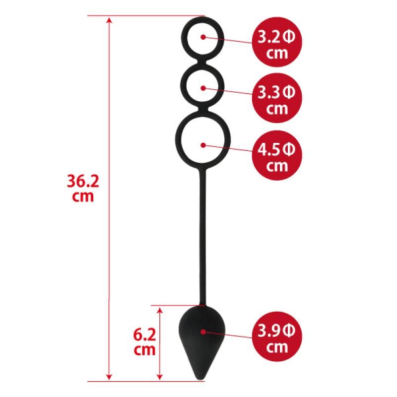 ■ 包裝尺寸(mm):H200 × W130 × D55 ■ 產品重量(g): 165 ■ 本體重量(g): 70 ■ 本體尺寸(cm):全長37.5 / 小環直徑3.1 / 中環直徑3.1 / 大環直徑4.5 ■ 插塞尺寸(cm):長6.4 × 直徑3.9 ■ 商品編號(no):4562170317402