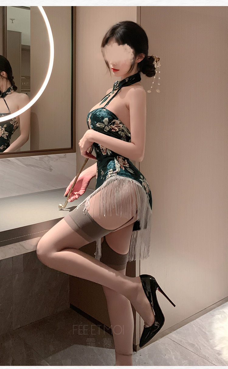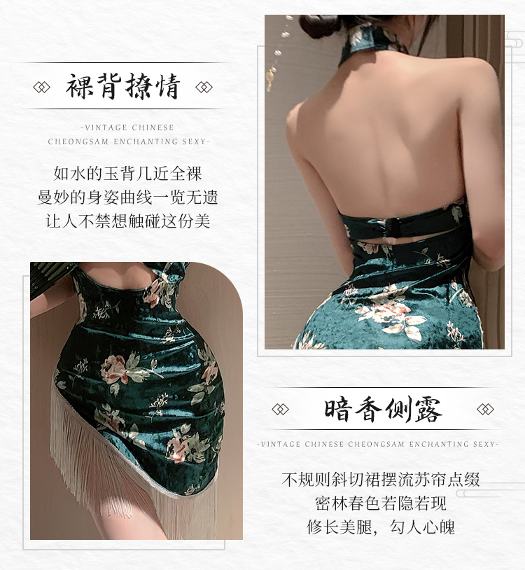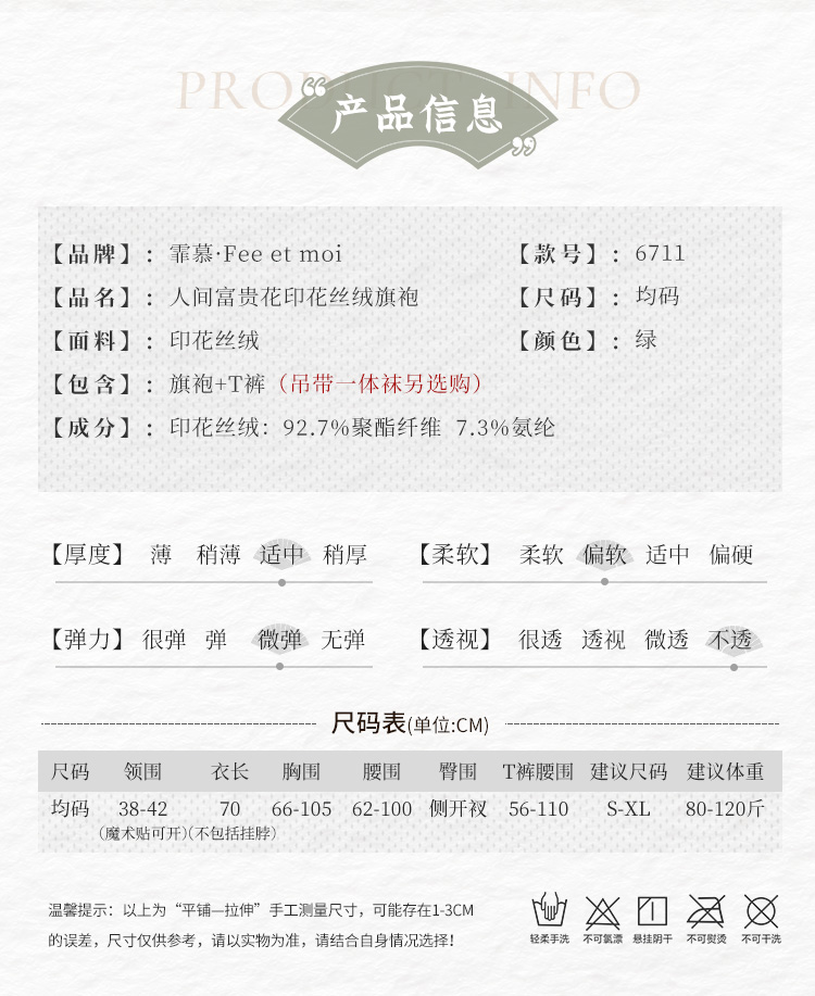中国霏慕 – 人间富贵花印花丝绒旗袍 均码