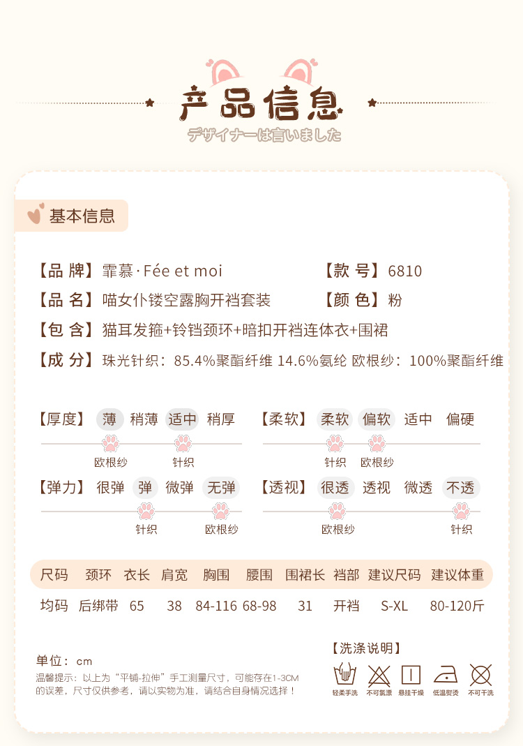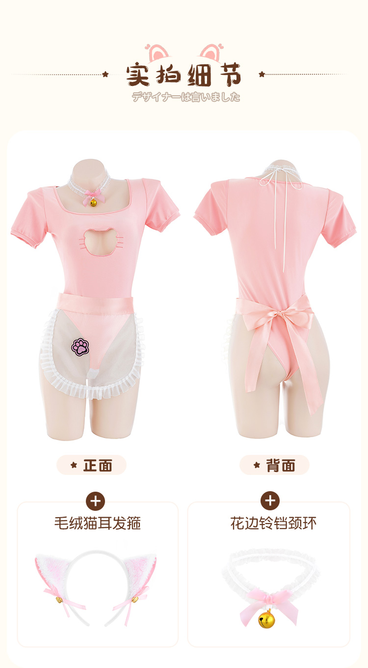 中国霏慕 – 喵女仆缕空露胸开档套装 均码 [粉]
