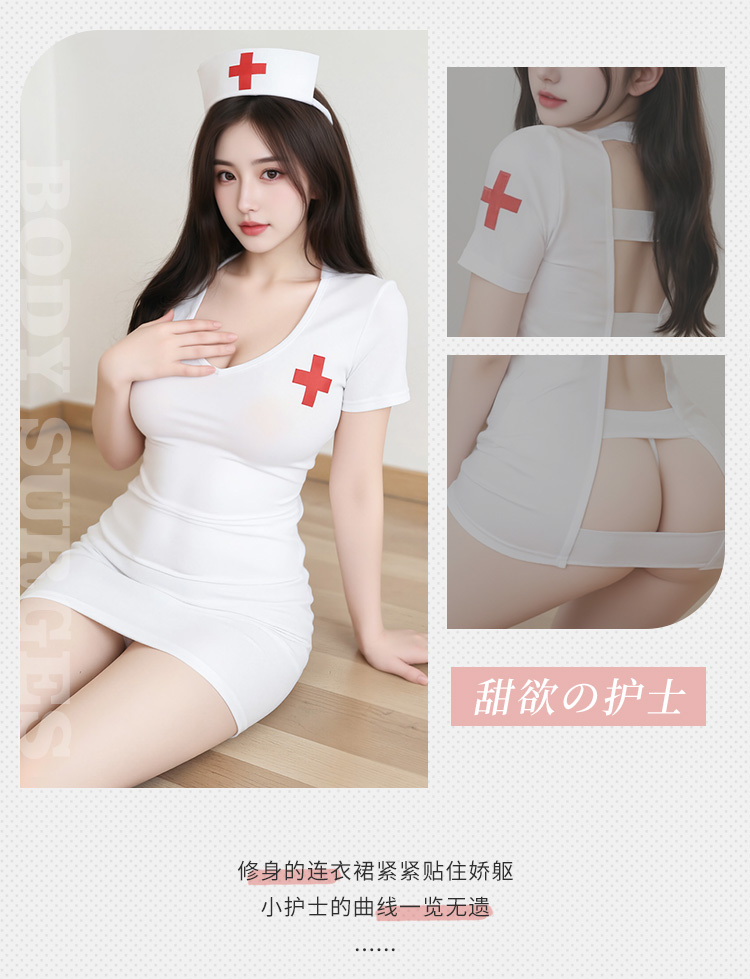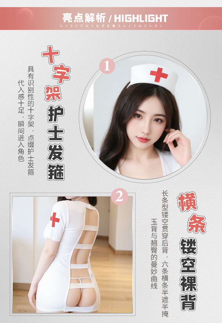 十字護士頭飾瞬間入戲,橫條鏤空後背展示曼妙麯線身材!