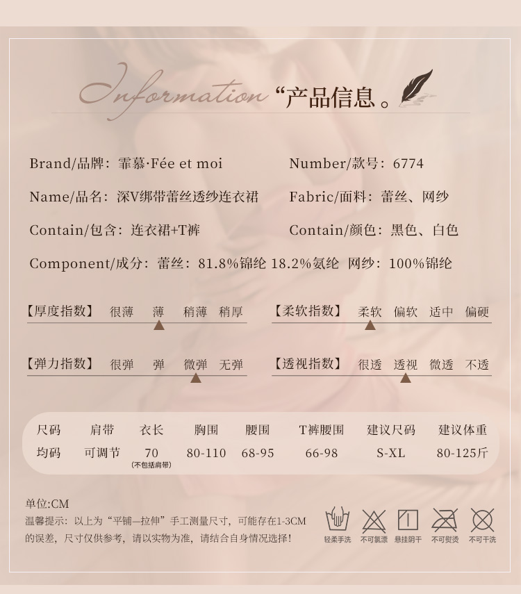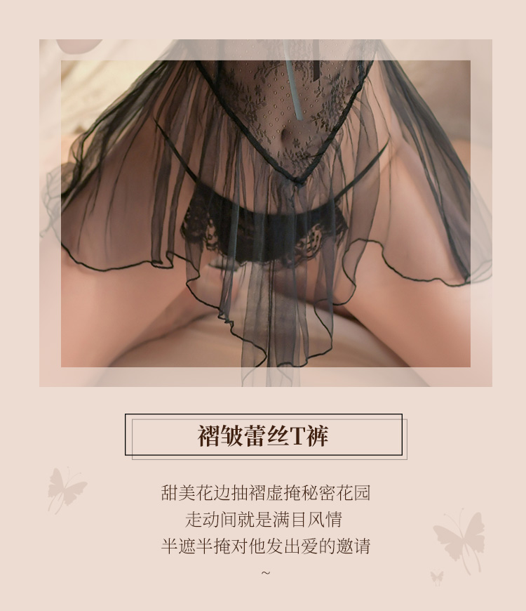 中国霏慕 – 深V綁帶透紗蕾絲情趣連衣裙 制服誘惑款 [黑]