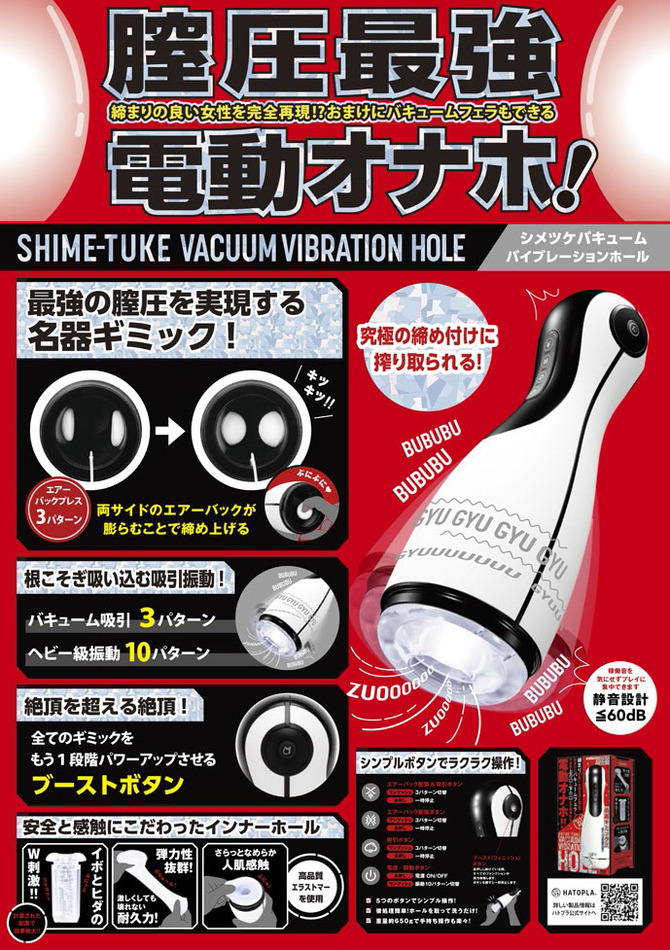 日本HATOPLA – SHIME TUKE VACUUM VIBRATION HOLE 真實性愛真空吸吮振動高品質全自動飛機杯
