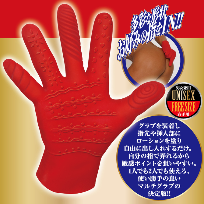 日本A-ONE – 肛門刺客 五類紋路多重快感手套[紅色款]