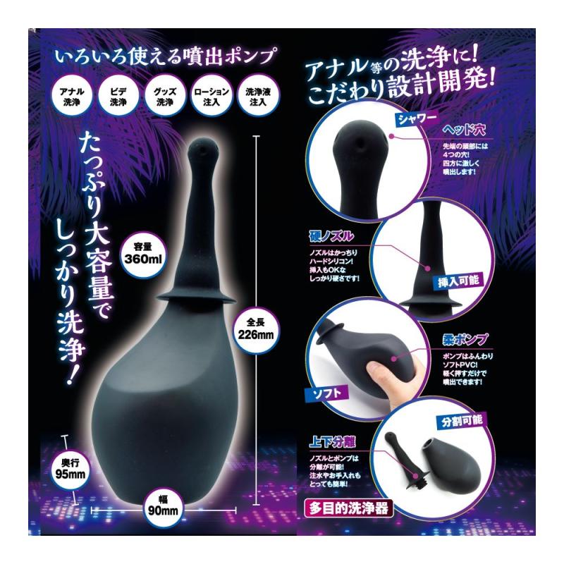 這款肛門淋浴多目的灌洗清潔器擁有360ml大容量設計,能一次裝入足夠清水或清潔液,搭配四向噴射孔的專用硬質矽膠噴頭,插入後即可均勻釋放水流,有效達成深層潔淨。軟PVC材質的水泵擠壓順手,操作簡單省力;噴頭與水泵採分離式設計,方便注水與清洗維護,衛生度更高。此產品不僅能用於肛門及私處沖洗,也可作為飛機杯內部的清潔工具,甚至能改裝用於注入潤滑液或洗淨液,真正多用途滿足各種需求。無論是日常保養還是性愛前準備,這款多功能清潔器都能提供安全、便利與潔淨的使用體驗。