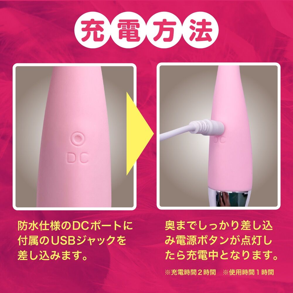 | 電池:USB充電 充電中:電源按鈕點亮 充電完成:燈光熄滅 充電時間:約2小時 使用時間:約1小時 功能:震動 震動:7種模式 探頭:直徑約8mm柔軟材質 設計:矽膠機身可彎曲 重量:超輕量設計,僅40g 防護:生活防水,清潔更安心 |