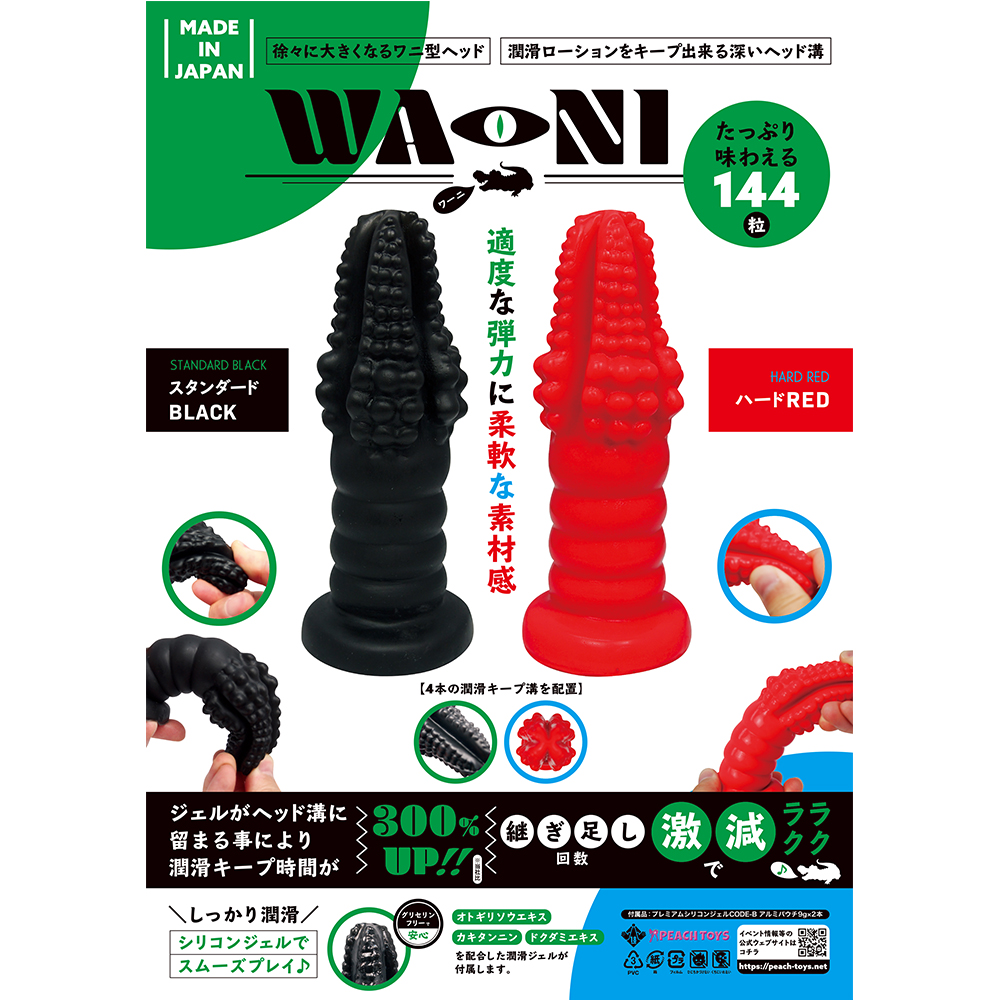 「兇猛鱷魚 黑色仿鱷魚皮顆粒深溝快感肛塞」是PEACH TOYS專為後庭設計的獨特款式,外觀以仿鱷魚鱗片顆粒搭配深溝設計,能有效鎖住潤滑液,避免長時間遊玩時快速乾燥。頭部從直徑1.3cm逐步擴張至4.9cm,從初學者到進階玩家都能找到合適的快感節奏。整體顆粒高達144點分布,插入過程中層層壓迫帶來強烈摩擦感,抽出時更有悶絕般的快感爆發。柔軟彈性的PVC材質質感如軟糖般親膚,既安全又舒適。附贈兩包CODE-B矽膠潤滑劑,讓你立即體驗持久且高濃度的後庭探索快感。