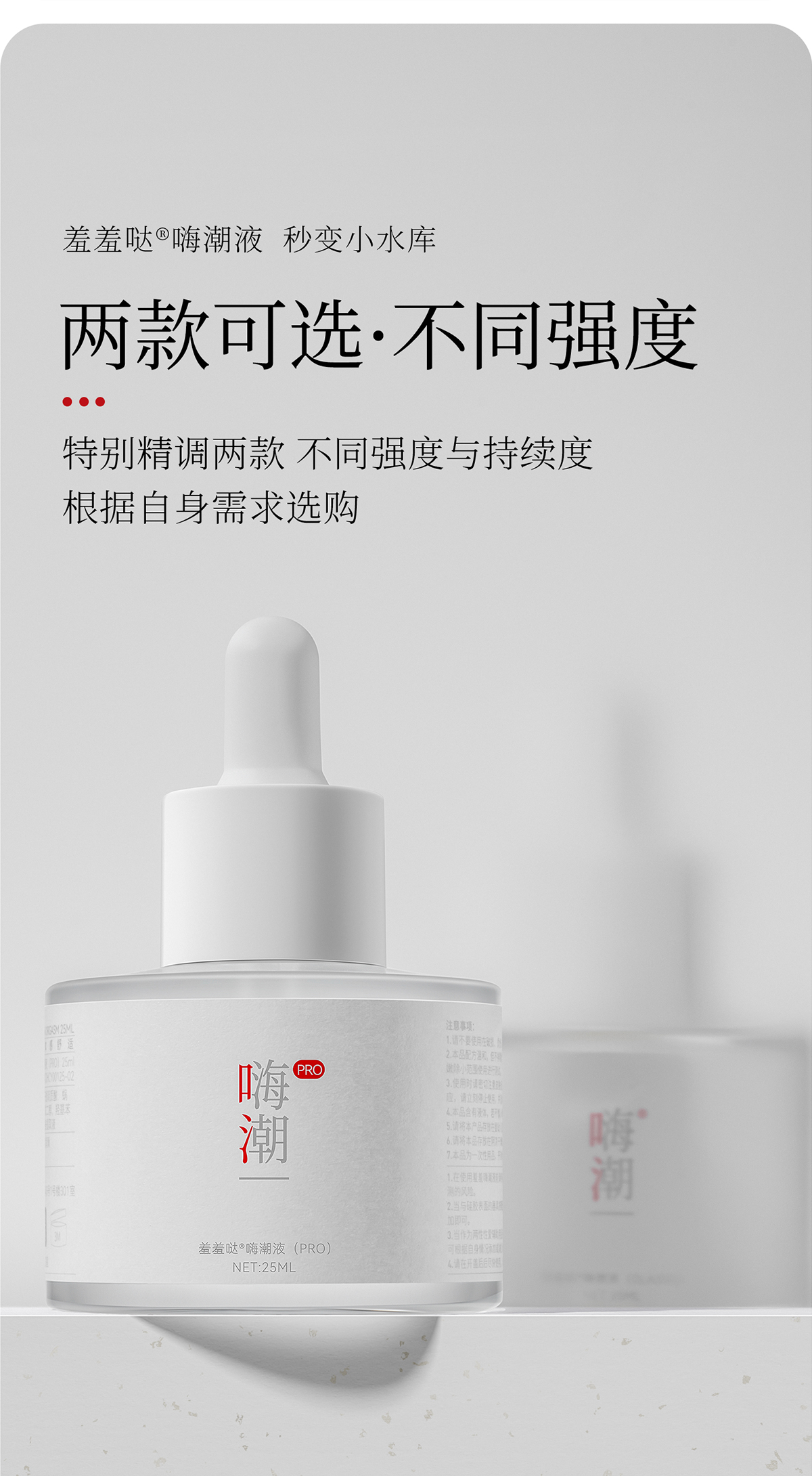 這款來自羞羞噠的「嗨潮液PRO 快感增強型玻尿酸潤滑液」專為女性設計,容量25ml,獨特的玻尿酸與植物萃取配方,能長時間保持私密部位的水滑感,並增強愉悅的快感。這款潤滑液不僅能提供超長效的潤滑效果,還能呵護肌膚,讓每一次的使用都更加舒適與安全。無化學香精,無酒精,適合敏感肌膚使用。潤滑效果持久,能夠顯著減少摩擦,並讓私密部位的感覺更為敏銳、濕潤。每次使用後,您將感受到持久的水滑潤滑,不會乾燥,享受更自然的愛撫體驗。