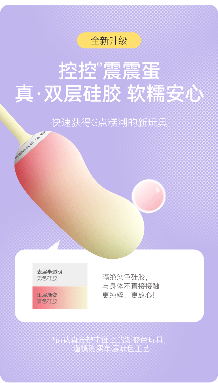 羞羞噠震震蛋MINI遙控無線跳蛋AI版豆蔻黃,採用獨家Emotionic IV震動模組,震頻更高聲音更輕,深層滲透每寸敏感點,帶來細膩酥麻的私密挑逗。全新雙層矽膠設計,外層半透明隔絕染色接觸更安心,搭配可愛豆蔻黃漸變色,讓人一眼心動。僅2.6cm纖巧直徑輕鬆入體,專為初次體驗與小巧體型量身打造,無負擔深入釋放甜蜜顫動。支援手機APP遠距遙控,自創專屬波形並儲存分享,戀人異地也能同步操作享受浪漫互動。更能結合語音或視頻,零距離共享每次悸動。防水靜音技術讓你在浴室或街上也能悄悄享受,釋放屬於你的無限私密樂趣。