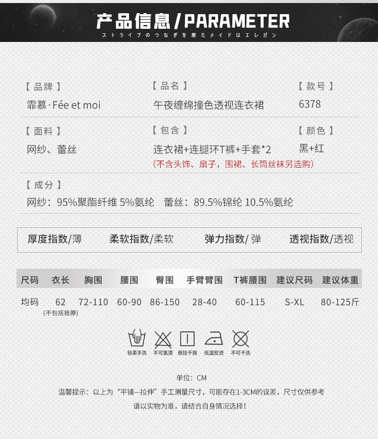 性感撞色與薄紗透視巧妙結合,營造出若隱若現的神秘氛圍,點燃午夜纏綿的每一刻慾望!