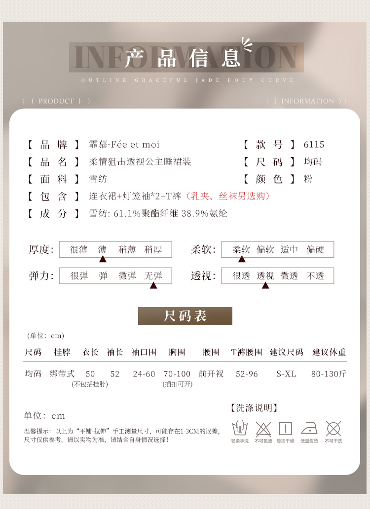 輕柔透視紗質結合公主風設計,甜美中暗藏性感殺傷力,讓人一眼淪陷在您的溫柔攻勢中!