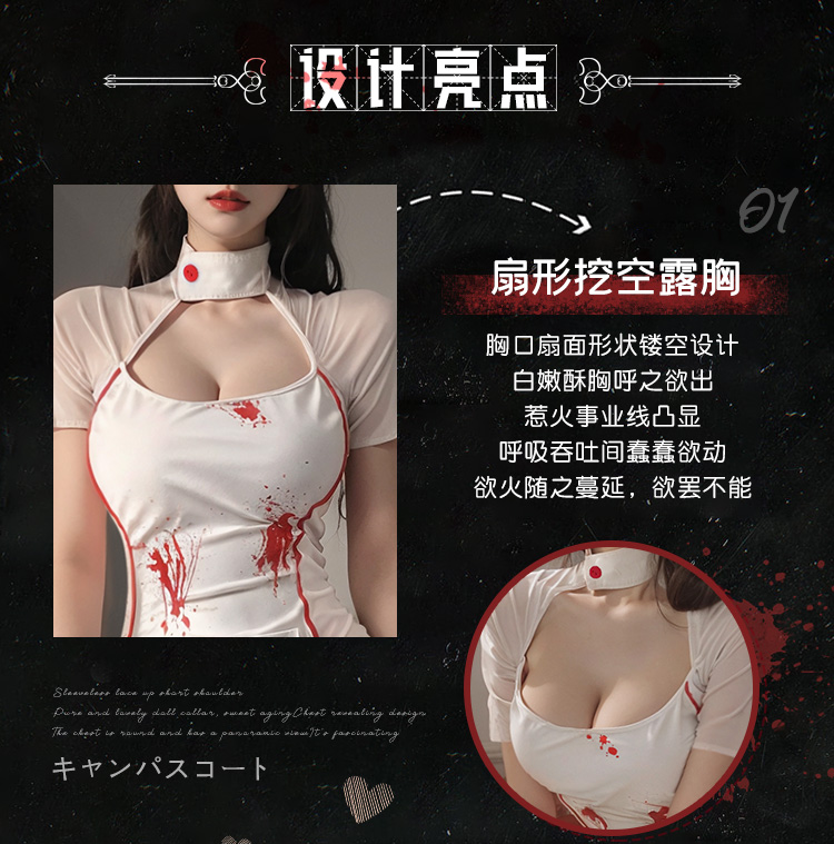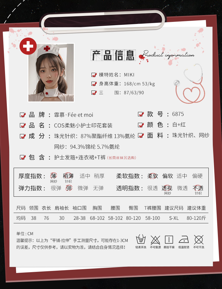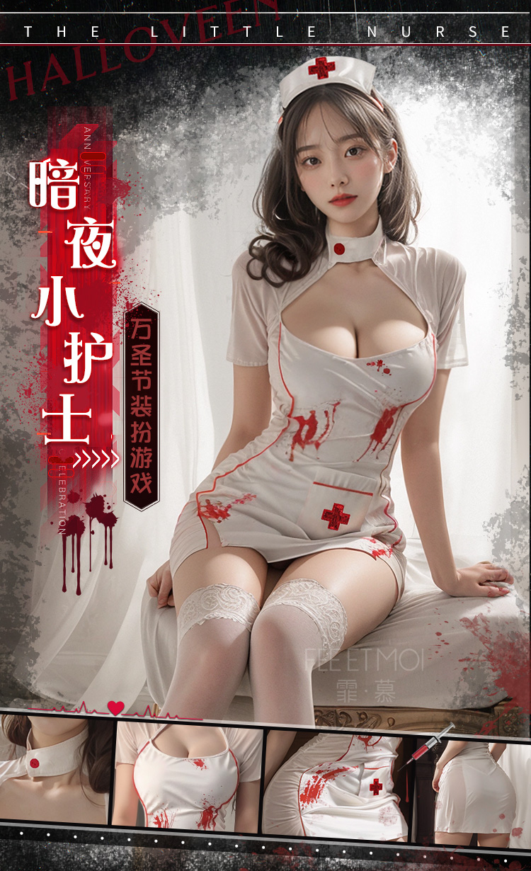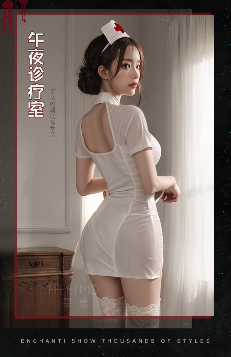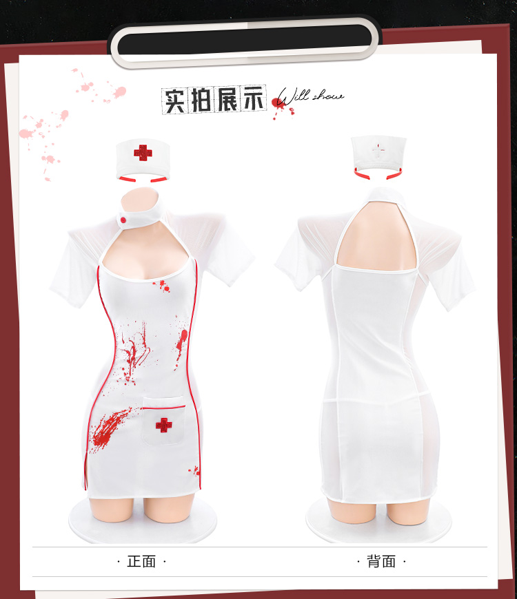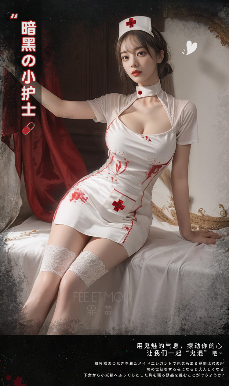 中国霏慕 – 暗夜小護士 誘人露溝透視制服COS護士派對套裝 [均碼]