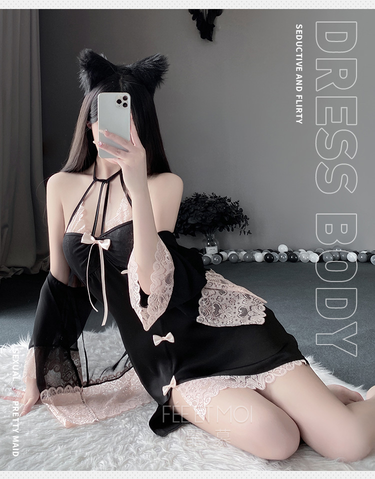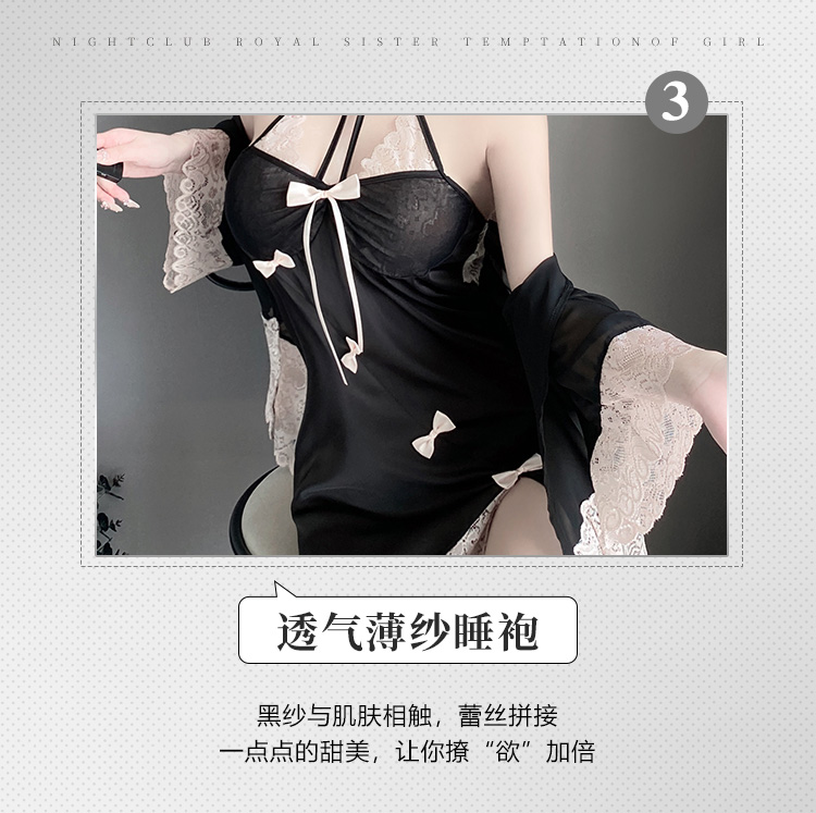 霏慕 – 純欲調情 蕾絲拼紗透視家居睡袍情趣套裝