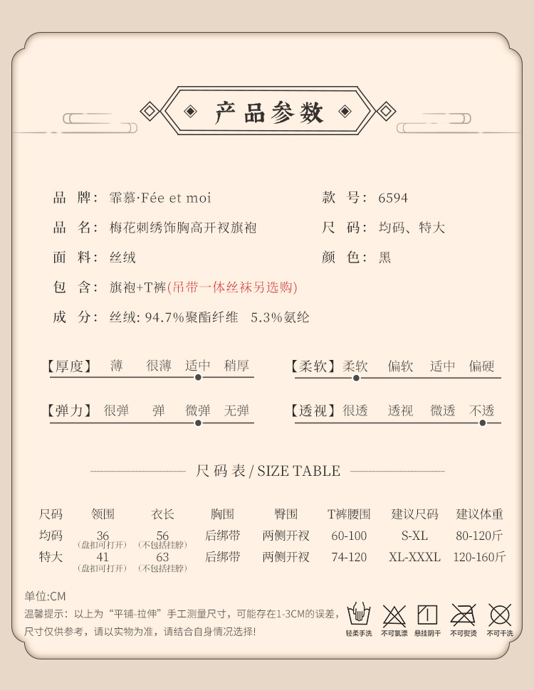 東方韻味與性感兼具,梅花刺繡點綴胸前,高開衩剪裁展現曼妙曲線,為豐滿身形量身打造!