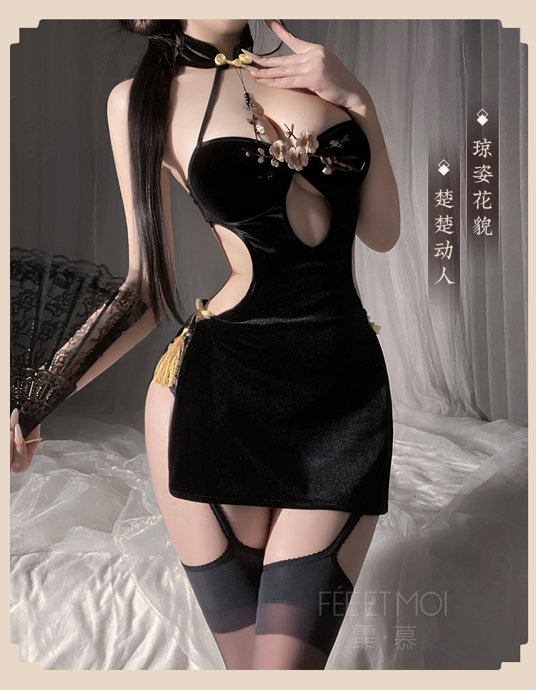 中国霏慕 – 梅花胸飾款 高衩刺繡旗袍情趣內衣