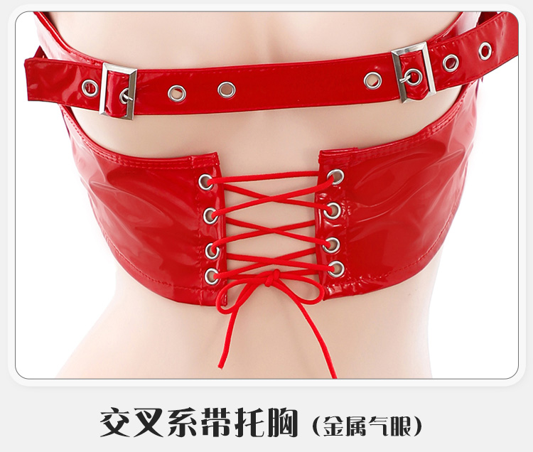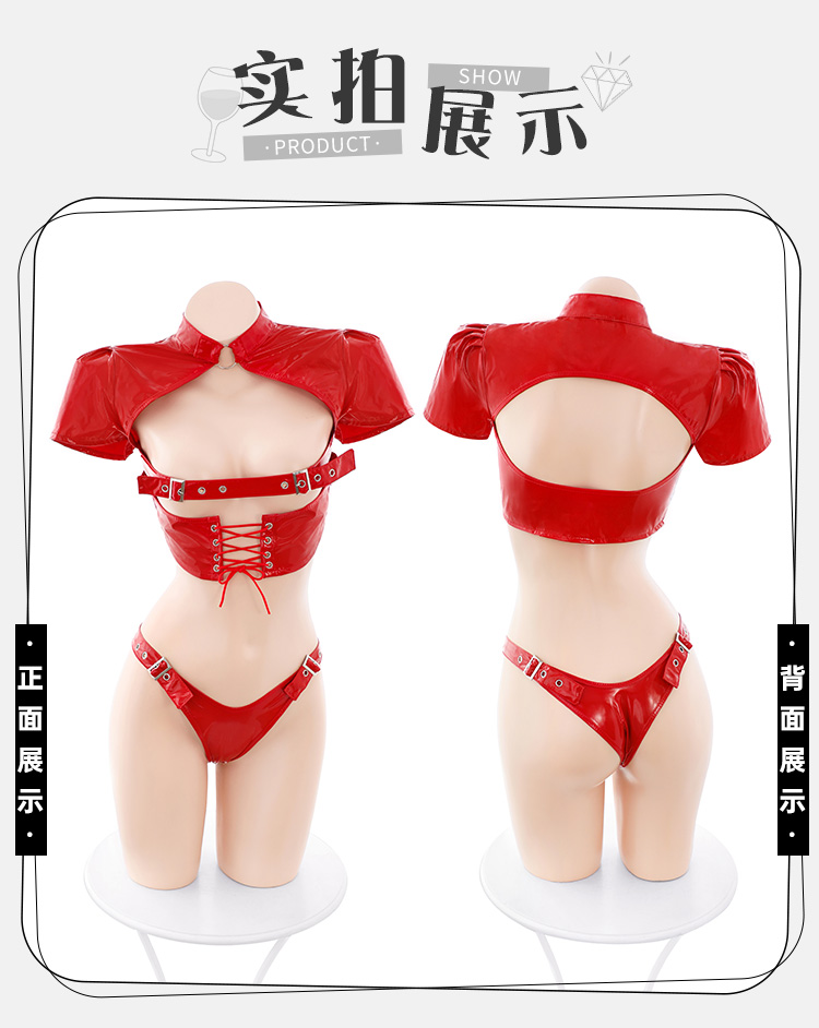 霏慕 – 魅惑女皇 性感挖空露胸狂野火辣漆皮裝 [紅色均碼]