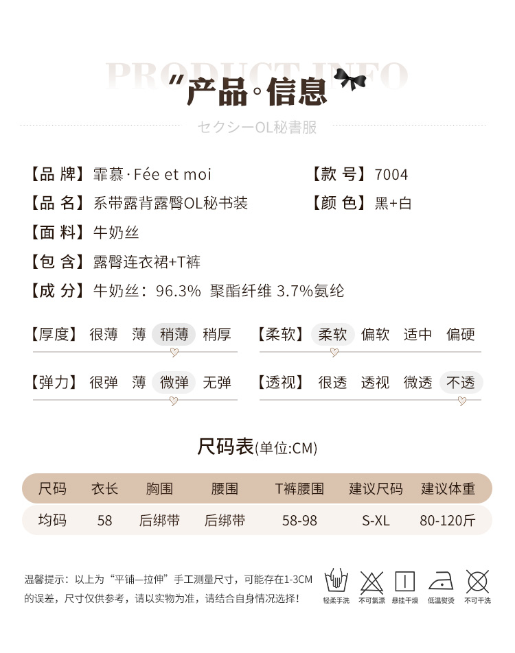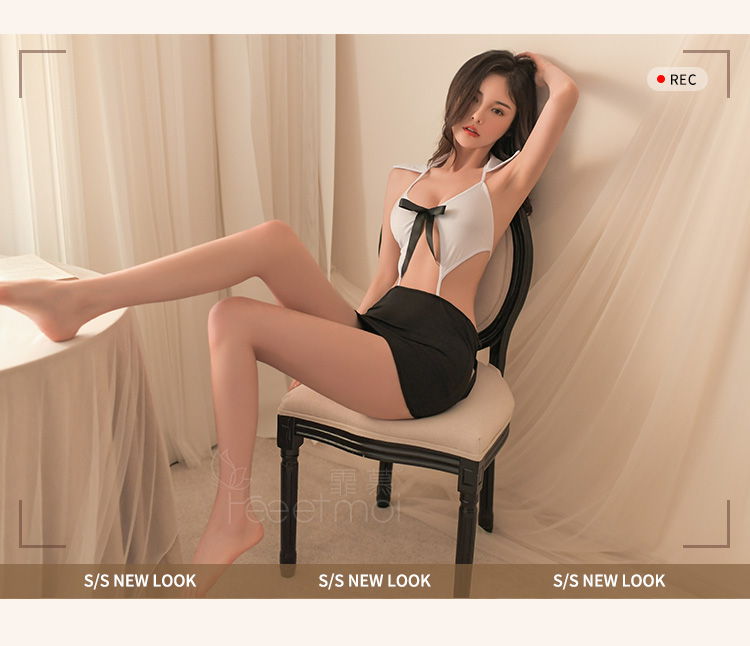 中国霏慕 – 系带露背露臀OL秘书装 均码 [黑白]