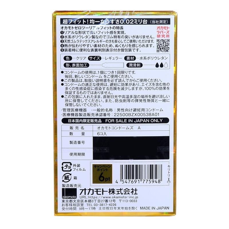 日產岡本 – OKAMOTO ZERO-TWO 0.02避孕套無儲精囊版 6片裝