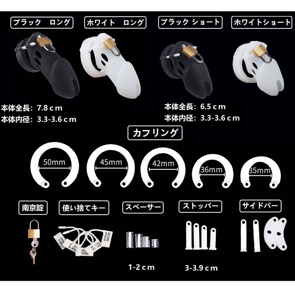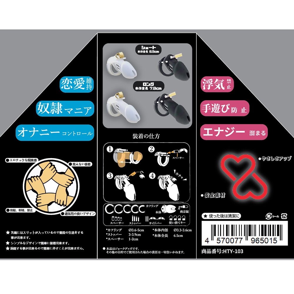 | 材質:ABS塑膠 特點:可組裝結構、輕量耐用、可調式拘束尺寸 設計:短版造型,前端留有排泄孔 用途:貞操訓練、服從管理、BDSM調教 顏色:黑色 製造地:日本 |