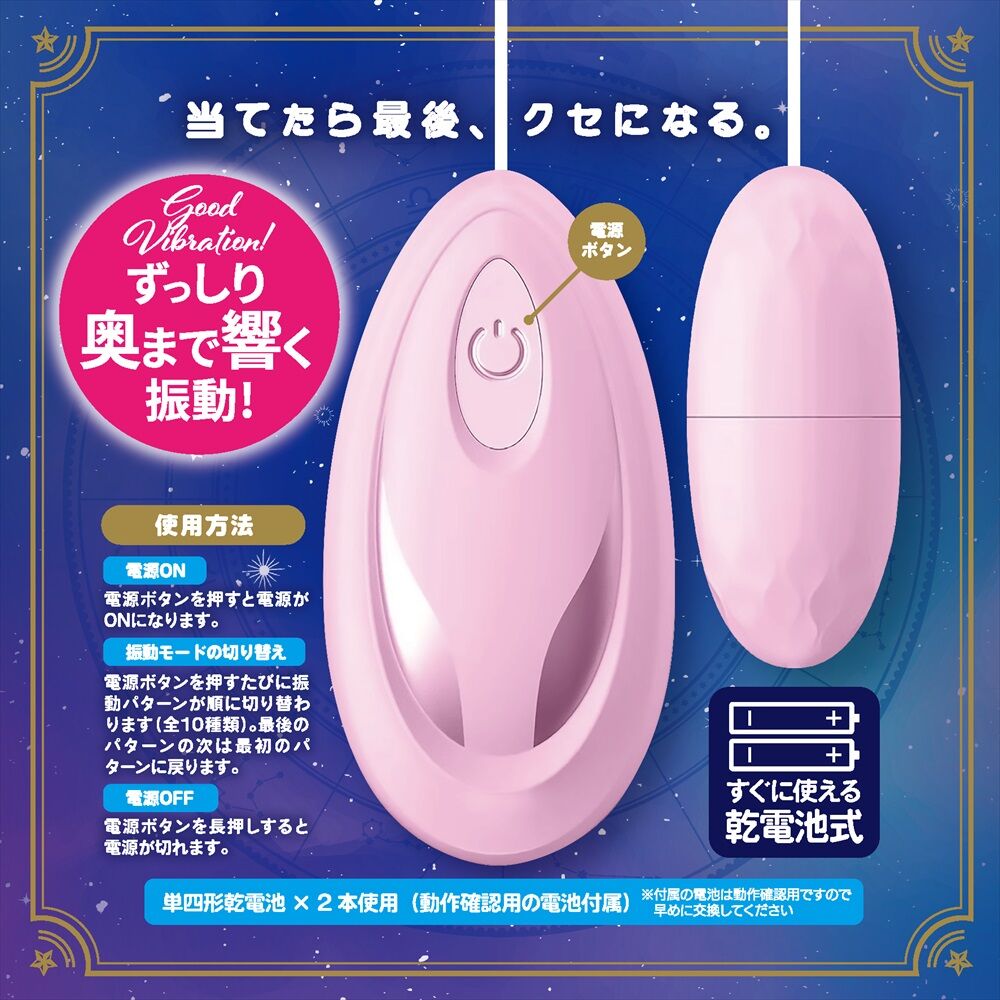 | 電池:乾電池式(單四電池 ×2) 功能:振動 振動:10 種模式 強度:3 段階(包含於模式中) 材質:ABS 硬質外殼 |