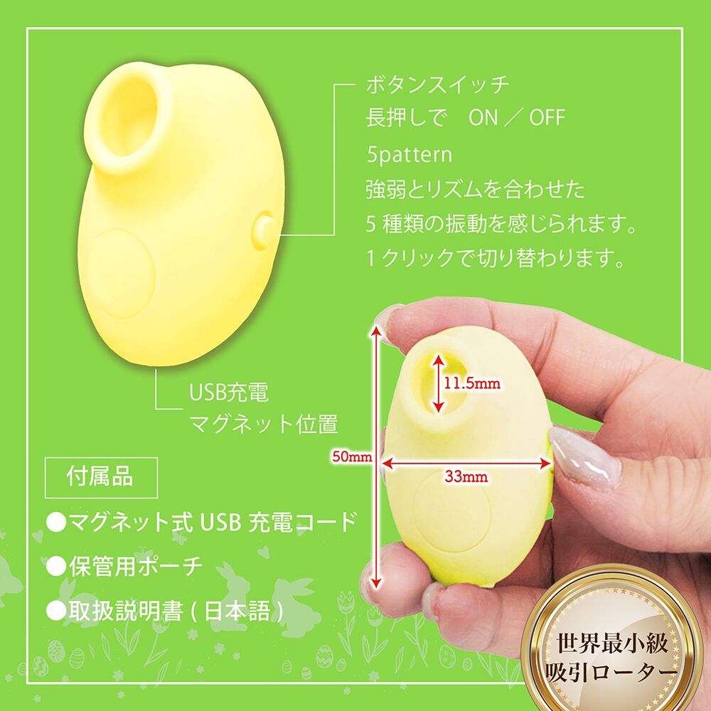 「超迷你5頻陰蒂吸吮震动按摩器[檸檬黃]」 是由 MIC 推出的全新迷你吸引器系列,專為陰蒂吸啜功能設計。調查中最受女性歡迎的三種柔和色彩現已上市!獨家空氣閥門5節奏加 3強度,像濕熱唇舌狂吮陰蒂,瞬間電流竄全身,腿根發軟!矽膠小嘴溫柔包覆吸力滿格,超靜音搭配IPX7防水,內褲裡、浴室中、伴侶身旁都敢偷爽!60分快充45分連續高潮,由於其超小型設計和靜音功能,您不僅可以隨身攜帶,還可以放在內衣中偷偷享用。此外,產品完全防水,清潔也極為方便。磁吸式充電技術讓操作更簡單,清新檸檬黃配色可愛帶點調皮,附送可愛收納袋,讓隱秘攜帶更加安全方便。