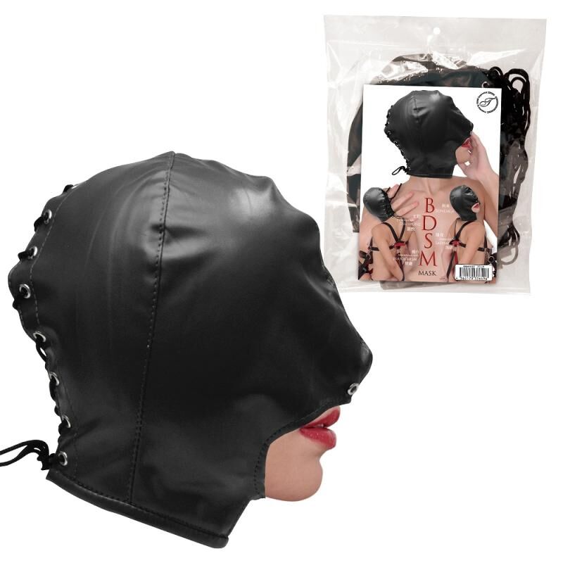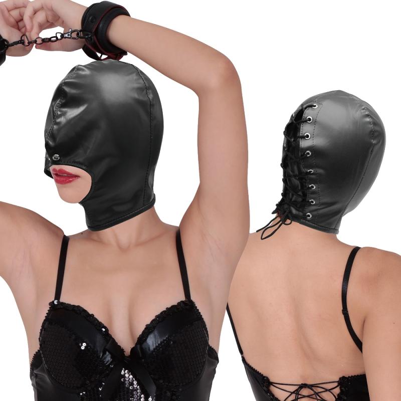 黑色開口頭套鎖定語言與視線,仿皮包覆×親膚內裏,調教儀式一戴即入戲!