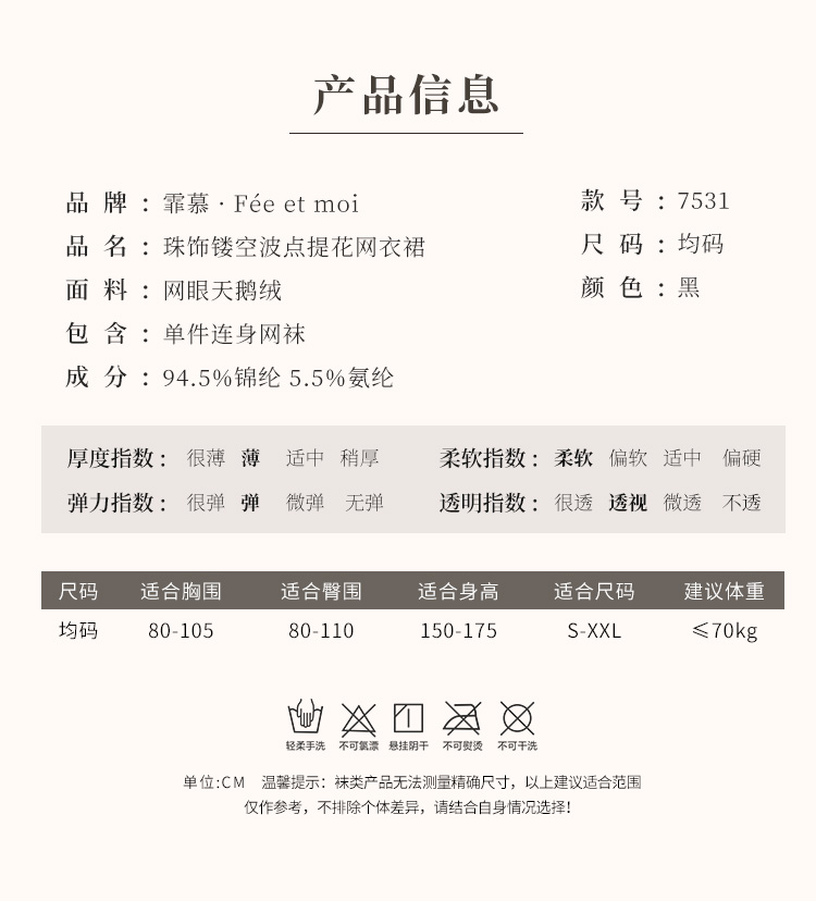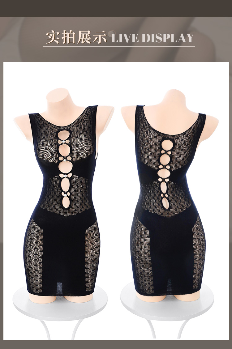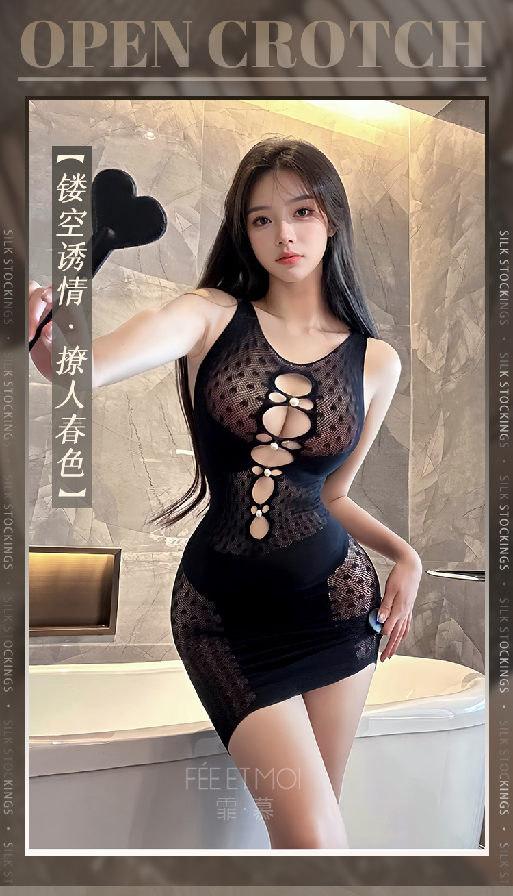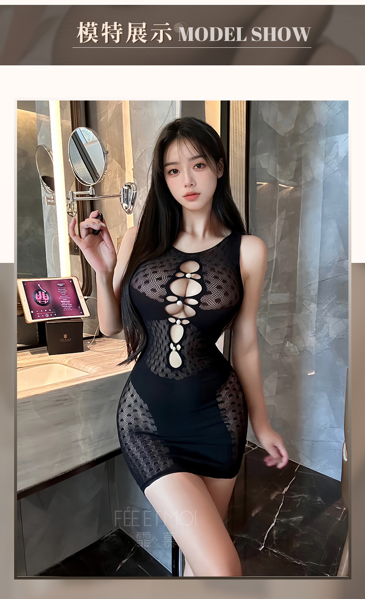 霏慕 – 甜辣誘人款 珠飾鏤空波點包臀網衣裙連身情趣襪