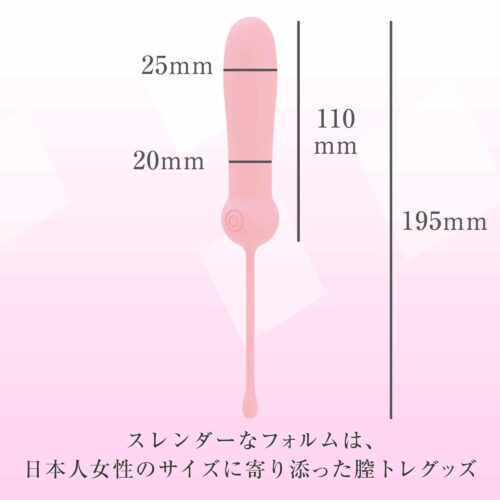 這是一種適合亞洲女性大小的陰道訓練用品,彌補了「陰道訓練用品太大」的缺陷。細長的形式使初學者很安心。