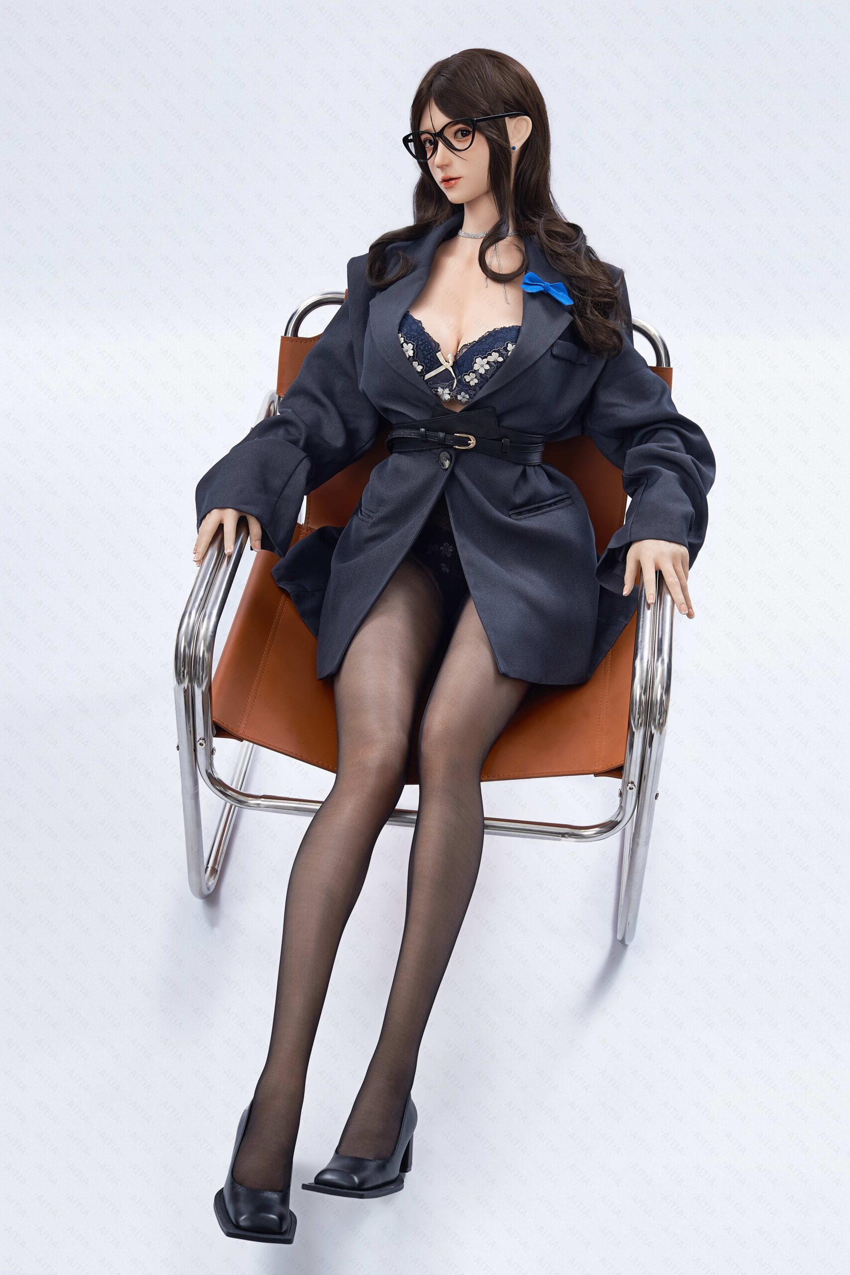 這款辦公室御姐,以白領女孩為靈感打造,優雅中帶點距離感,又讓人忍不住想靠近。及膝窄裙搭配西裝外套與蝴蝶結襯衫,完美重現 OL 通勤穿搭,配上微卷長髮與眼鏡造型,像是每天和您擦肩而過的那位同事。全臉採用純手繪妝容,細緻暈染眼影、自然唇色與立體鼻影,久看也不會膩。溫控仿生肌膚摸起來帶有微微暖意,觸感柔軟有彈性,更貼近真實肌理。全身多處仿生關節可自由調整姿勢,不論是站立辦公、坐姿會談,還是下班後鬆開外套的小性感,都能穩定呈現,成為您書房與臥室中最具存在感的專屬 OL 夥伴。