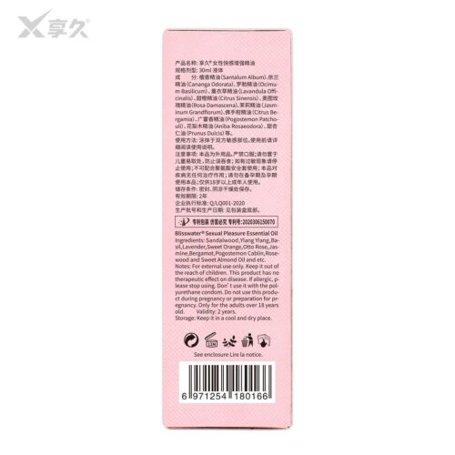 享久快感增強精油,主要用於成年男女房事和女性自慰過程中增強快感與情趣。男女使用後體感溫熱,女性感覺陰道內部緊緻,並伴隨膨脹跳動感;精油分子小滲透速度快,男性陰莖充分吸收後,滋養、發熱血液循環加速,使海綿體快速充血,勃起態佳;在女緊男挺的雙重狀態下,快感增強。 全球原產地優選,包含意大利、保加利亞在內的歐洲進口單方精油,物理工藝提取,最大化保留產品特性,優質天然成分,放心依托。不是每一款產品都叫精油。 產品優勢: 滋養:緊緻如新 盈潤花苞 激活:勃起態佳 強勁活力 舒適:溫暖濕漉 愛欲高漲 安全:植物提取 溫和親膚無刺激 勁活:快速交融 歡愉頂峰 快感:精油分子量小快速吸收 觸感迸發 哪些人可以用呢? 男性: 如果你想嘗試花式的性愛,如果你追求高質量的性愛生活,如果你想用品質好物寵你最愛的她,在交融的過程中,讓她更加享受,得到她的認可,你可以試試享久快感增強精油。 女性: 女性有時候自己讓自己高興,享久新品是精油,不僅緊緻私處,滋養花苞,而且可以用於器具,如果你性慾減退想找回自己,如果你每次都覺得乾澀不舒服,都可以使用享久快感增強精油。 男女合體: 如果你們想快速的進入狀態,彼此感受同步的快感,而且過程中持續保持快感,想嘗試不同姿勢的交融,可使用享久快感增強精油。