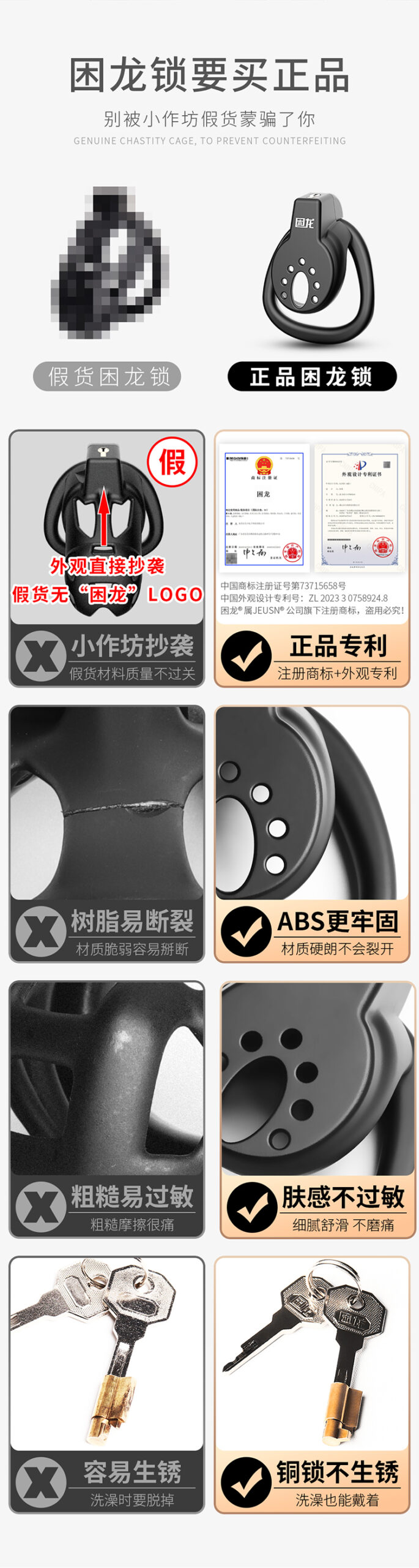 JEUSN困龍CB鎖【黑色平板A款】,為高階調教玩家設計的純平隱形款式,採用創新平板構造徹底壓抑勃起,全無立體輪廓不再鼓包,穿著內褲也能完全隱藏。全鎖體採ABS硬核材質製成,抗裂耐磨不變形,長時間配戴依然穩定牢靠。觸感方面則注入獨家皮感油工藝,滑順細膩不粗糙不刺膚。細節全面升級:卡環底部弧形、貼蛋區與鎖環前後皆採扁平設計,真正做到「不卡蛋、不脫蛋」。搭配加大尿口與舒適角度,可輕鬆通過地鐵或機場安檢,實現長時間隱形穿戴與調教快感共存的完美體驗。