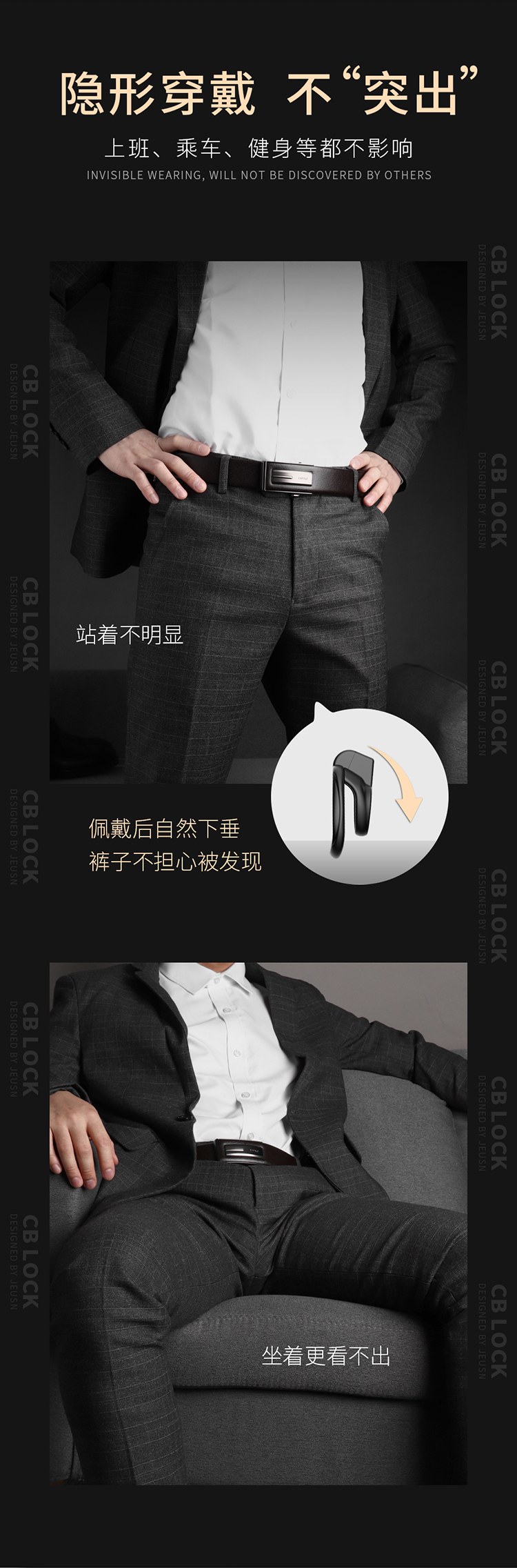 JEUSN – 主僕調教遊戲神器 隱形穿戴困龍CB鎖 【平板黑色款】