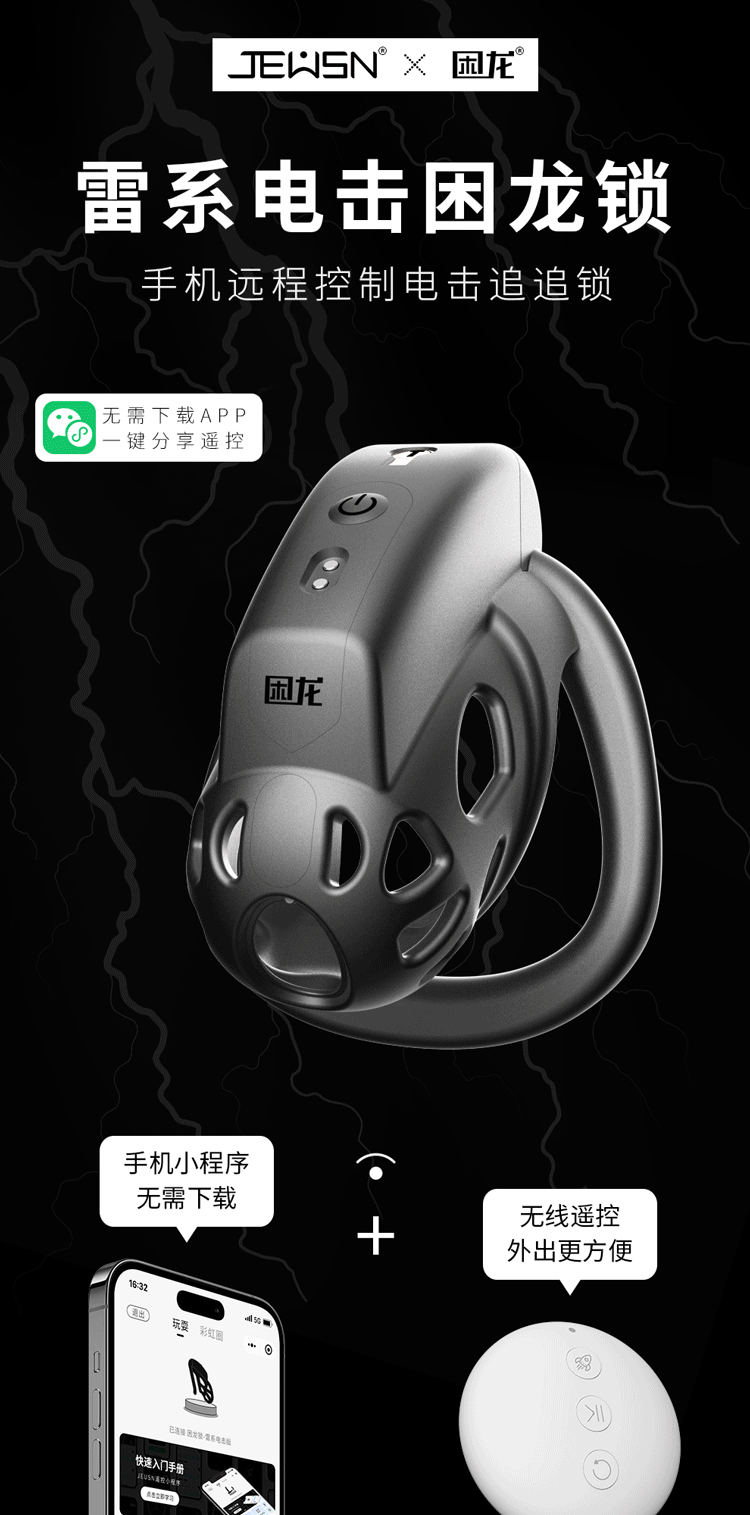 JEUSN主僕調教系列的新神器雷系電擊困龍CB鎖小號AI版,專為S/M調教關係專屬設計,全新第二代升級電擊構造,無論硬挺或軟軟都能精準發電,刺激不漏秒。採用雙重遙控模式:微信小程序免下載控制、附贈無線遙控器可隨身觸發,支援10種脈衝波形,還可自定DIY波形記錄。小巧尺寸更適配亞洲體型,內層細緻電極包覆私處,輕電擊恰似鞭打般快感湧現,從羞赧到痛快逐級調整。搭載ABS硬殼與安全電流防護機制,無需擔心燒灼感,安心刺激同時,感受如同主僕心跳連線般的控制悸動。