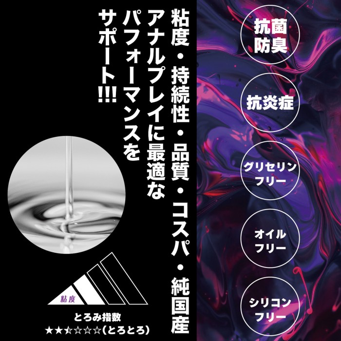 「絕對衝擊肛門潤滑液 進階款」專為上手玩家與高強度玩法設計,黏度約2.5但保濕續航更長,兼顧不易垂落與推進流暢。核心配方加入白金奈米膠體與銀,協助抗菌除味;再以甘草酸二鉀舒緩敏感刺激,長時間使用也更安心。無色透明、無香料,水溶性好清洗;200ml容量滿足從擴張到深入的多階段需求。當你需要更穩定的手感、更持久的潤滑覆蓋,進階款就是你的高性能選擇。